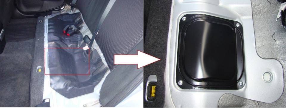 Топливный насос автомобиля Lancer 9 располагается внутри топливного стакана, который находиться непосредственно в бензобаке. Для того, чтобы получить доступ к электробензонасосу требуется демонтировать задний ряд сидений и вскрыть технологический лючок.