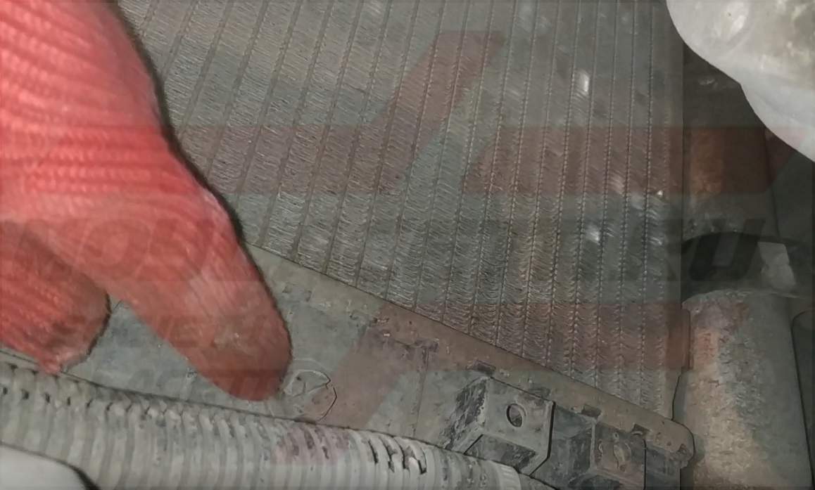 С нижнего торца радиатора чуть правее от центра (если смотреть по ходу движения) находим сливной штуцер и одеваем на него трубку. Можно и не одевать, но так меньше жидкости разольётся. Второй конец трубки направляем в ёмкость для слива жидкости.
