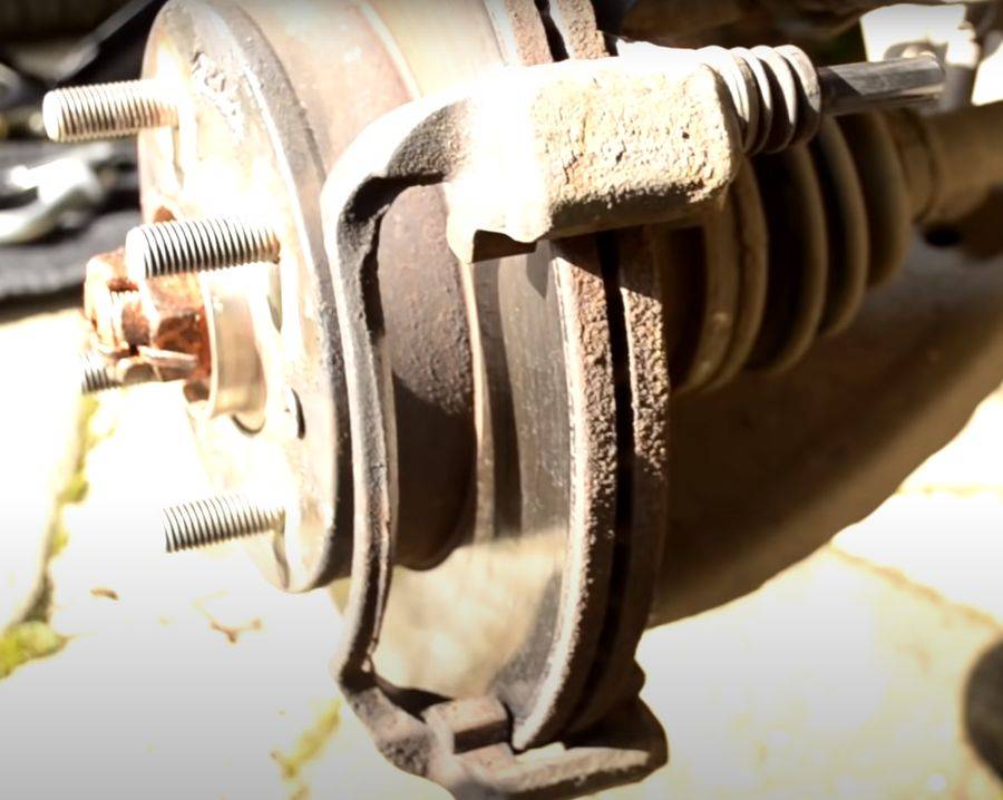 Если во время торможения отчетливо ощущается биение колес (или одного колеса), то это свидетельствует о разрушении тормозной колодки. Например, из-за заводского брака или вышедшего срока эксплуатации фрикционный слой растрескался и начал высыпаться.