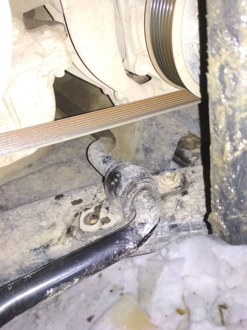 Итак, правый рычаг был сменен, а стуки справа несильные, глухие, но дико бесячие — нет-нет, да проскакивали.Решил глянуть, шо тама. А тама, а тама… Да ничего критичного, ожидаемый конец пришел втулке стаба. Благо я купил снова Sasic 2304026 Втулка стабилизатора подвески передней 74 рубля за штуку, не та цена, чтобы заморачиваться))Процесс замены занял минут 35, из которых 10 — пока открыл гараж, достал инструмент, домкрат, повесил светильник.Процесс крайне прост, если не лень лежать — можно просто вывернуть колесо, не снимая. Но на снегу лежать — не, мокро, холодно, глупо)))1) Домкратим авто и снимаем колесо.
