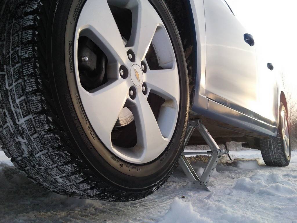 — Далее нужно с помощью домкрата снять нужное колесо.