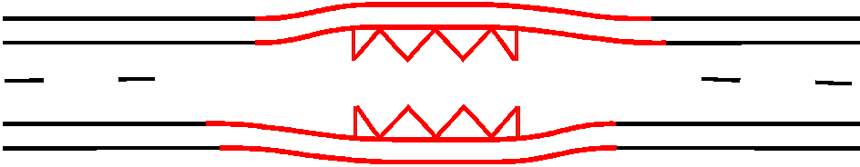 | Типа В (алмазная) — Применяются в населенных пунктах на дорогах с числом полос 6 и более в одну сторону. На загородных автомагистралях с числом полос 4 и более. Рекомендуется применение также на пересечениях или примыканиях автодорог на одном уровне, также на мостовых сооружениях с шириной проезжей части равной или меньшей ширины проезжей части. В местах проведения дорожных и ремонтных работ. Срок службы 10 лет. |