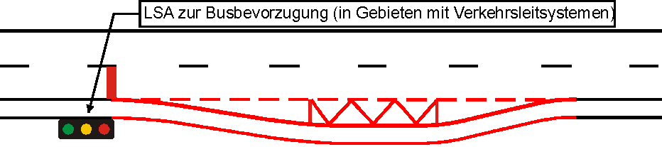 На остановках на проезжей части, переоборудованных для инвалидов, из-за повышенного края остановки, существует больший риск несчастных случаев для велосипедистов. Поэтому при интенсивном велосипедном движении край остановки нужно сместить от проезжей части дороги. Это осуществляется с помощью расширения поперечного профиля улицы на 25 см (микрокарман) и маркировки с помощью направляющей линии.